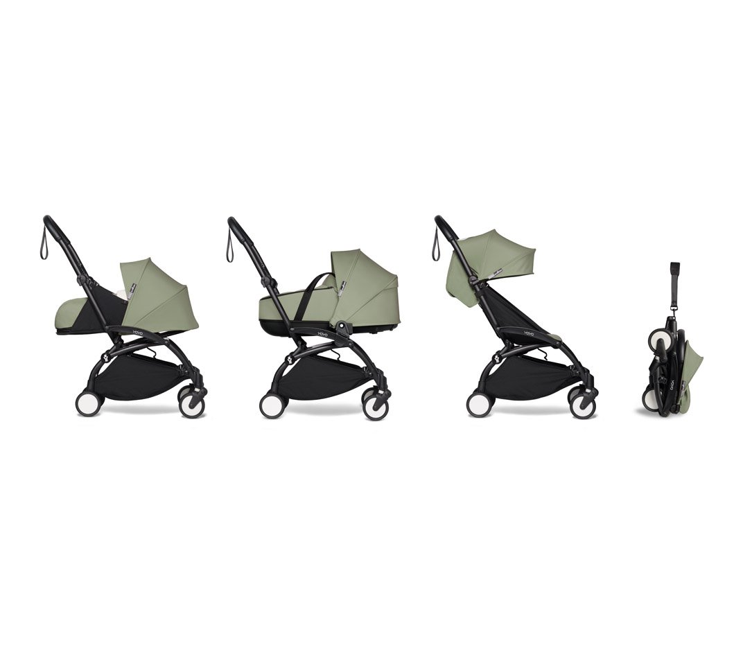 BABYZEN YOYO² Παιδικό Καρότσι 3 σε 1 με Μαύρο Σκελετό, Πακέτο Νεογέννητου, Πορτ-μπεμπέ & Olive