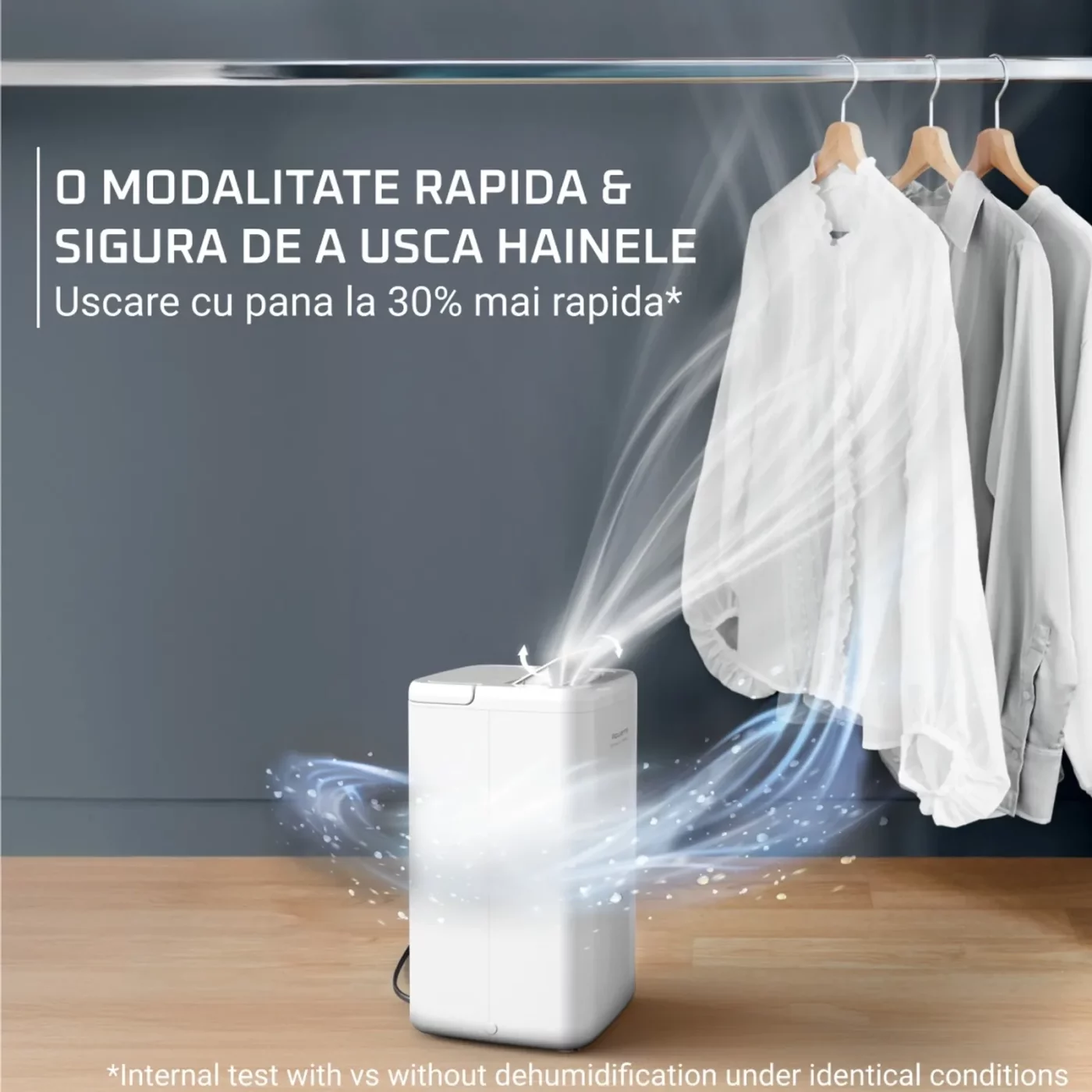 Ενεργοποιήστε την ειδική λειτουργία στεγνώματος ρούχων και στεγνώστε τα ρούχα έως και 30% πιο γρήγορα σε σύγκριση με το φυσικό στέγνωμα, χωρίς να καταστρέψετε τα υφάσματα. Ιδανικό για την κρύα εποχή ή για χώρους χωρίς μπαλκόνι.