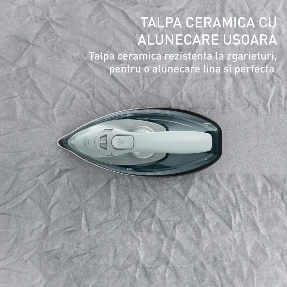 Η κεραμική πλάκα εξασφαλίζει εύκολη ολίσθηση σε κάθε τύπο υφάσματος, προστατεύοντας τα ευαίσθητα υλικά. Η ασφάλεια είναι εγγυημένη από την έξυπνη λειτουργία αυτόματης απενεργοποίησης και το σύστημα κατά του σταξίματος, το οποίο αποτρέπει τους λεκέδες στα ρούχα σε χαμηλές θερμοκρασίες. Με το Tefal Freemove Power, έχετε επαγγελματικά αποτελέσματα χωρίς κόπο.