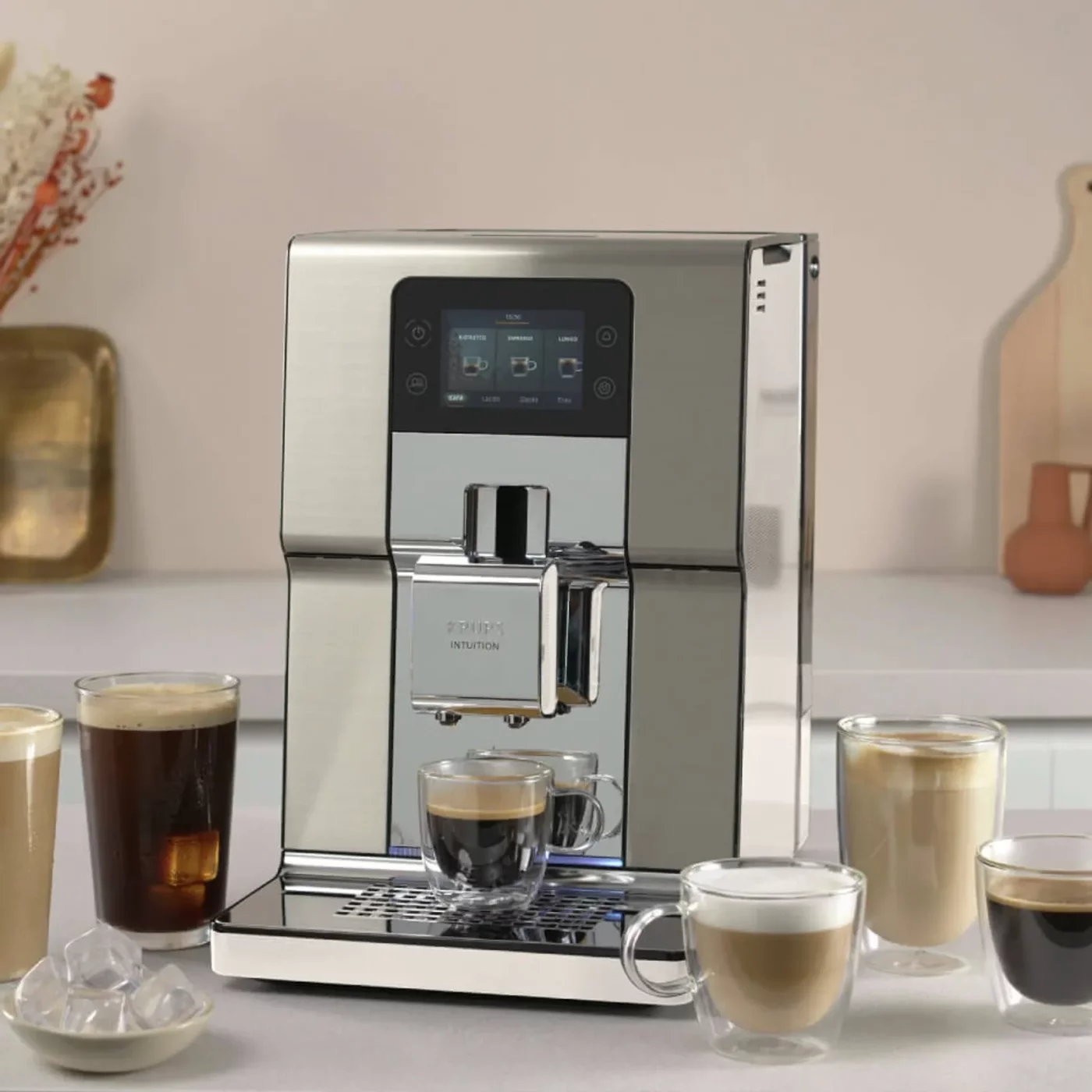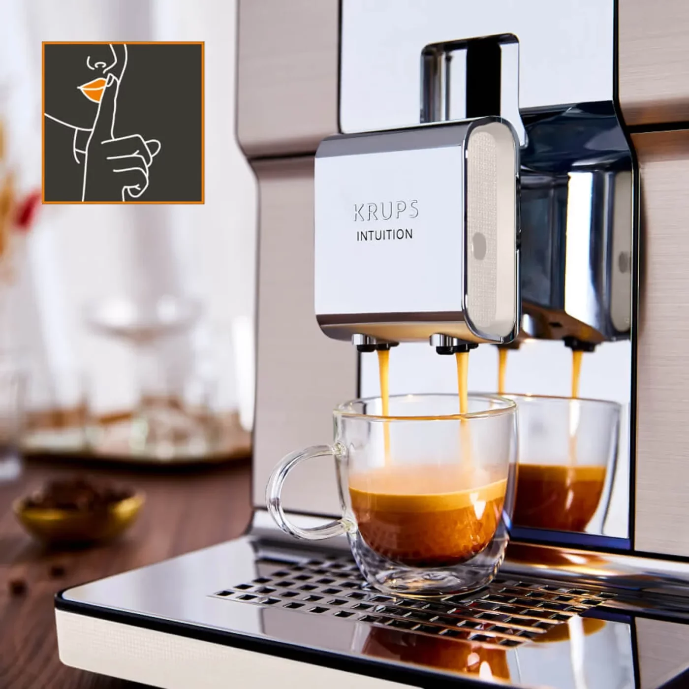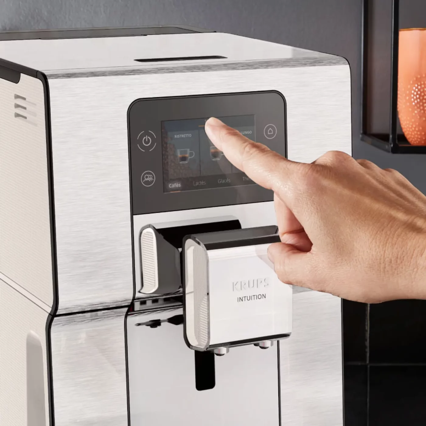 Με χαμηλό επίπεδο θορύβου και μοντέρνο σχεδιασμό από βουρτσισμένο ανοξείδωτο ατσάλι, που συμπληρώνεται από κομψό φωτισμό φλιτζανιών, η Krups Intuition Experience+ γίνεται το κεντρικό στοιχείο της κουζίνας σας.