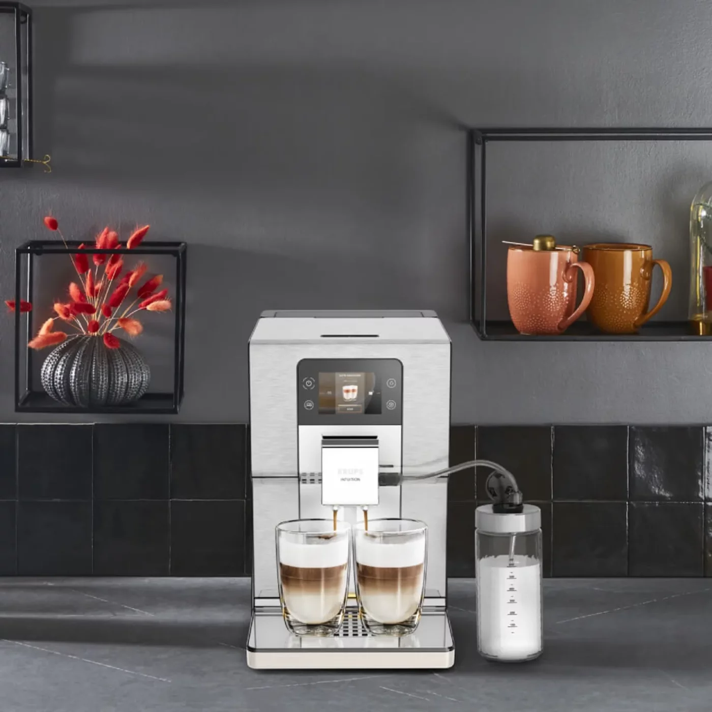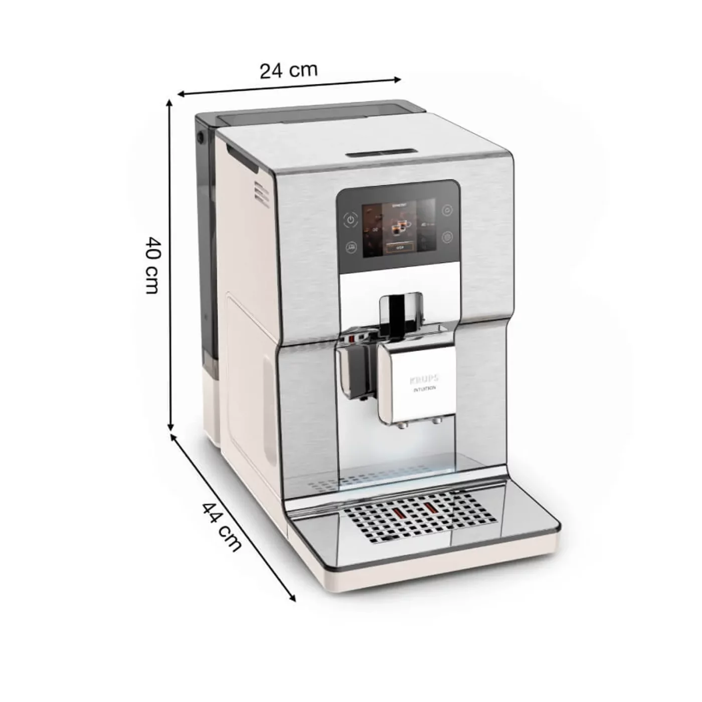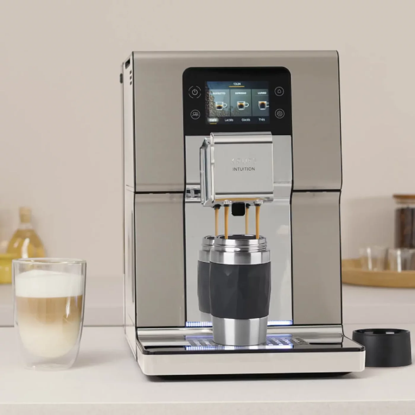 Με χαμηλό επίπεδο θορύβου και μοντέρνο σχεδιασμό από βουρτσισμένο ανοξείδωτο ατσάλι, που συμπληρώνεται από κομψό φωτισμό φλιτζανιών, η Krups Intuition Experience+ γίνεται το κεντρικό στοιχείο της κουζίνας σας.