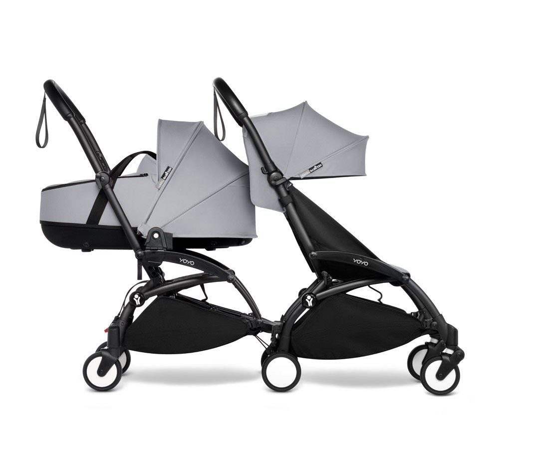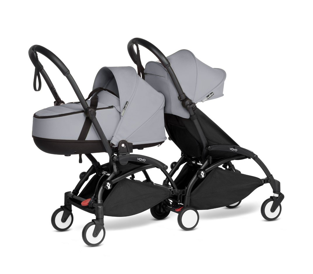 BABYZEN YOYO² CONNECT Διπλό Καρότσι Διδύμων με Πορτ-μπεμπέ, Μαύρο Σκελετό & Stone