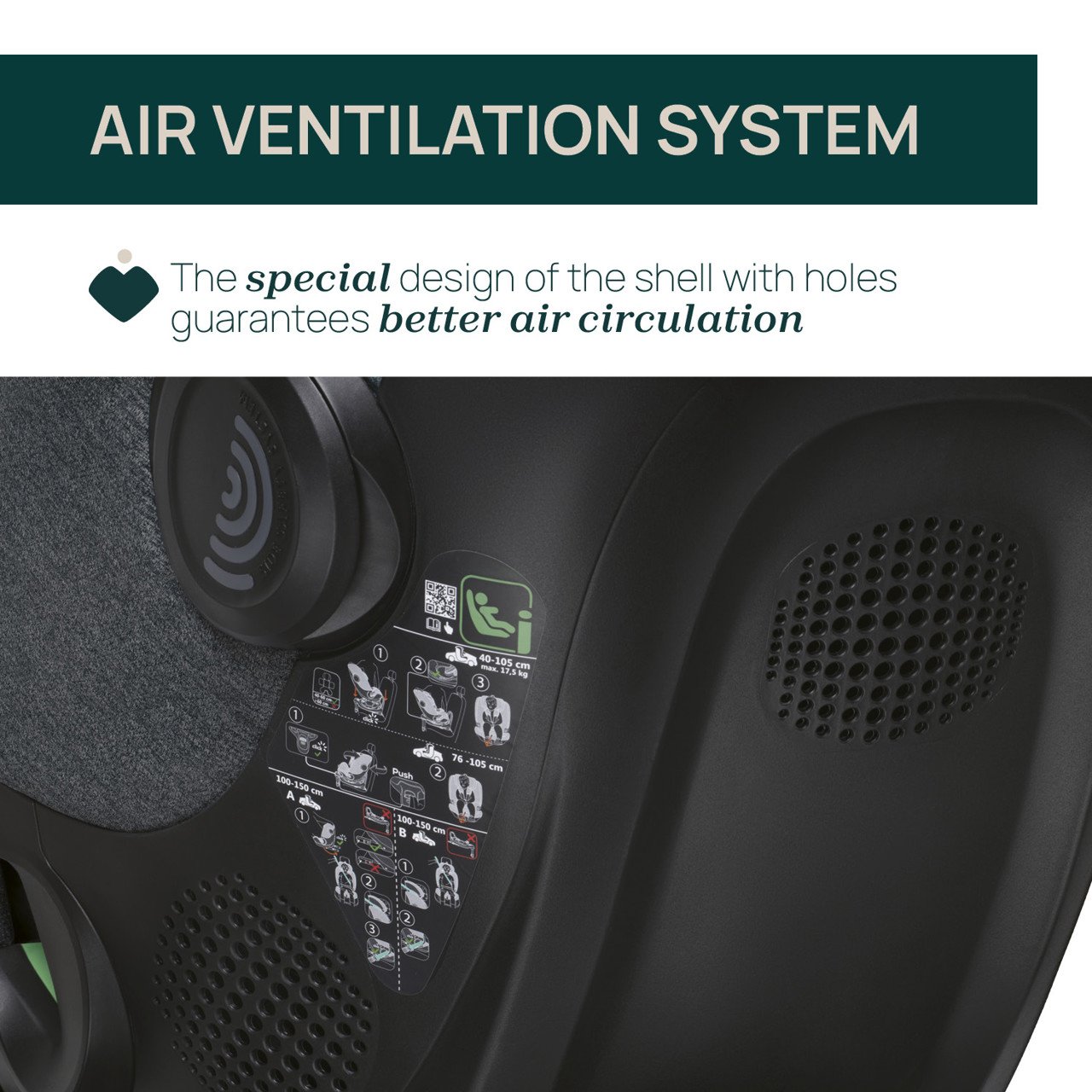 Ευέλικτη Εγκατάσταση: Χρήση με βάση Isofix (έως 105 cm) ή με τη ζώνη του αυτοκινήτου (από 100 cm).