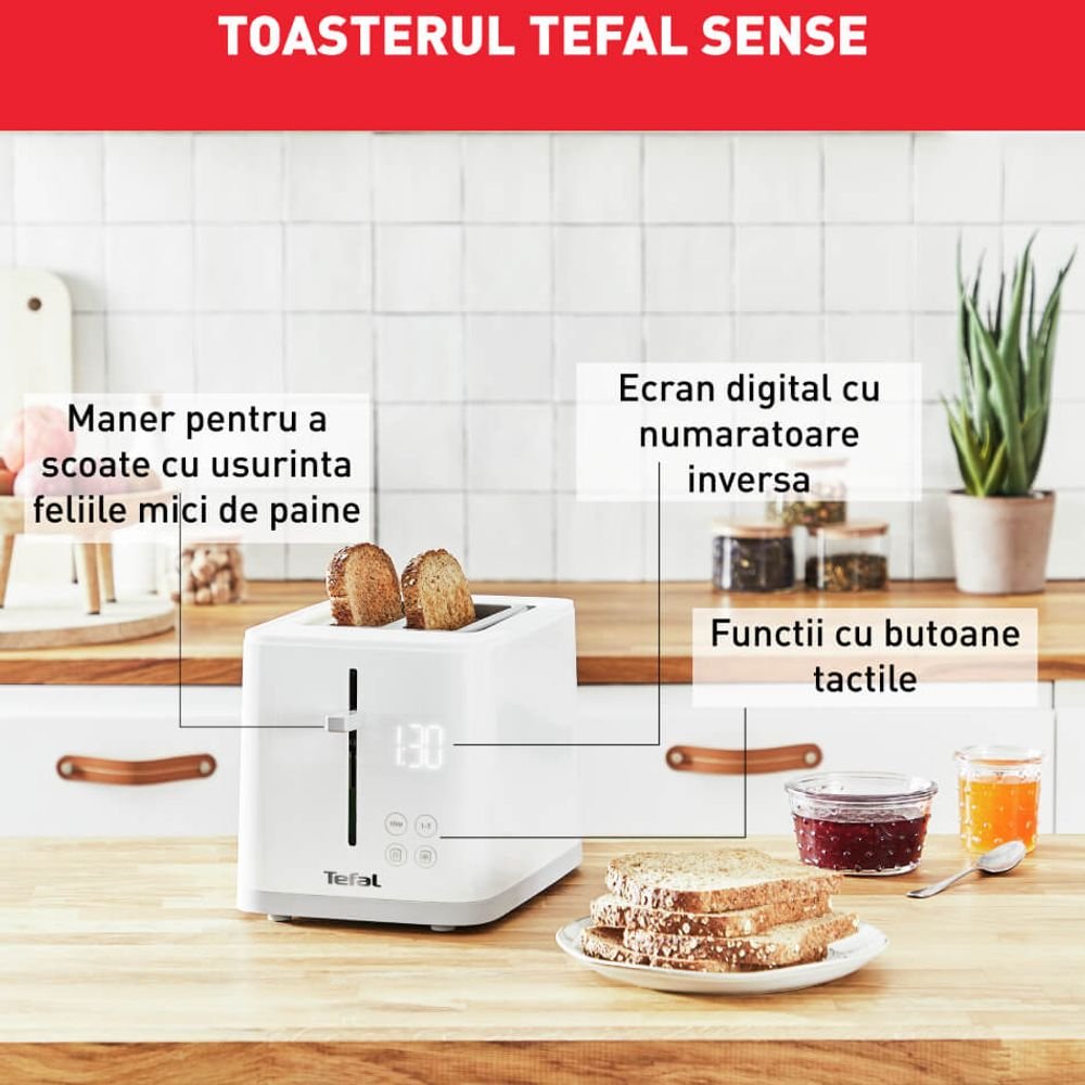 Φρυγανιέρα Tefal Sense TT693110, 850W, Ψηφιακή Οθόνη, 7 Επίπεδα, Λευκό