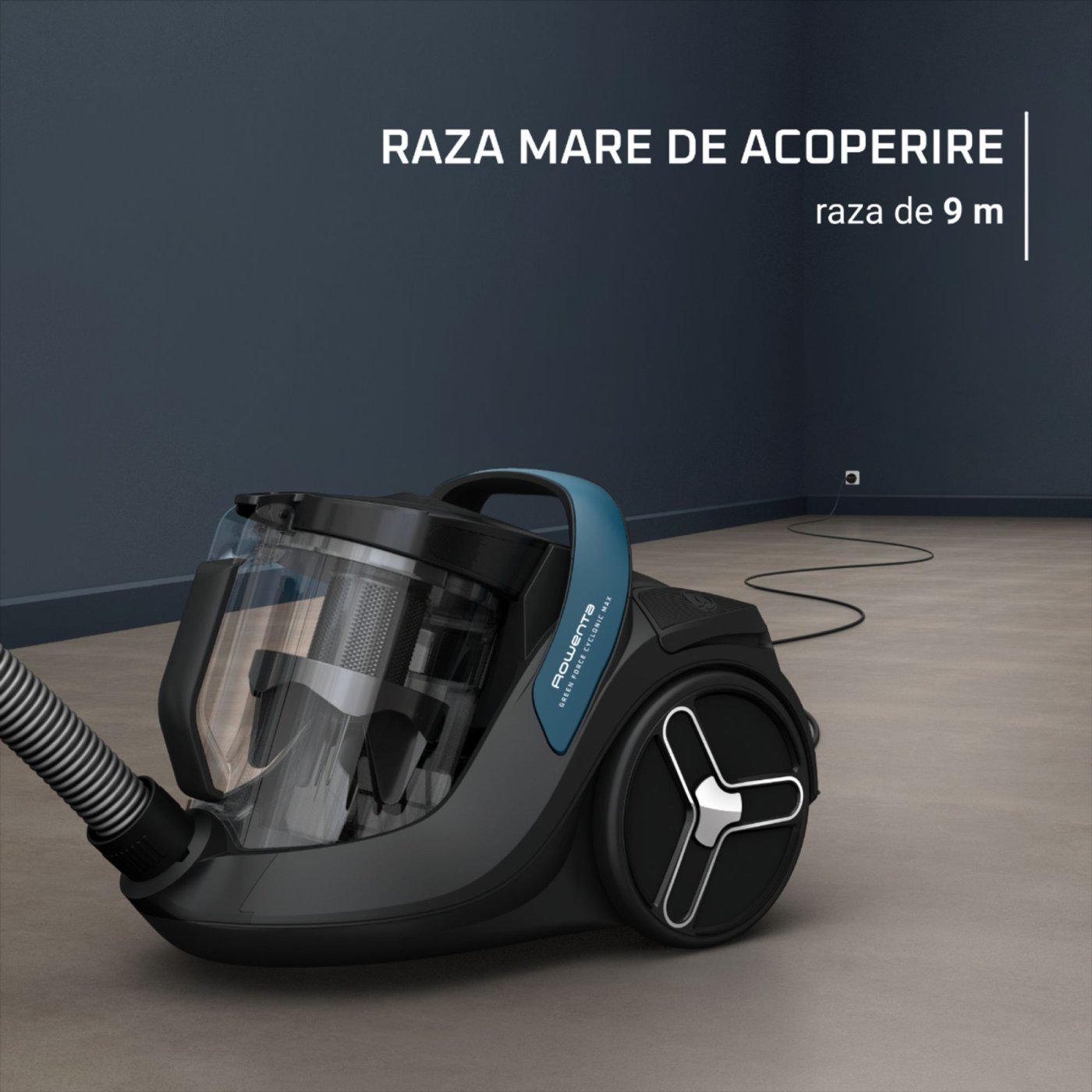 Εμβέλεια έως 9 μέτρα: Το μακρύ καλώδιο εξασφαλίζει άνεση και ευελιξία στον καθαρισμό.