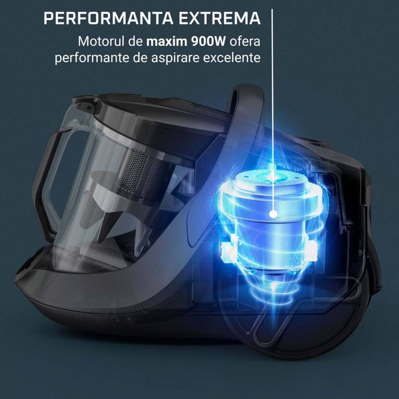 Υψηλή ισχύς αναρρόφησης μέγιστης διάρκειας 900 W.