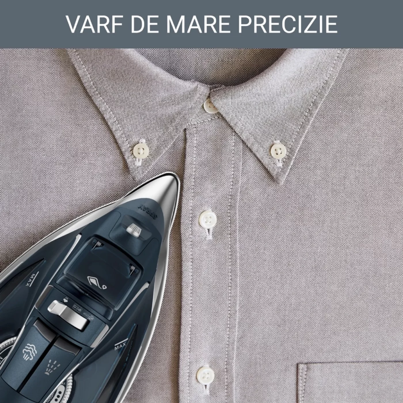 Ανακαλύψτε το ατμοσίδερο Rowenta Pro Master DW8221D1, την ιδανική λύση για την επίτευξη επαγγελματικών αποτελεσμάτων απευθείας στο σπίτι. Με εντυπωσιακή ισχύ 2800 W και ισχυρό πίδακα ατμού 200 g/min, αυτό το σίδερο λειαίνει γρήγορα και αποτελεσματικά ακόμη και τις πιο δύσκολες τσακίσεις. Η καινοτόμος πλάκα Microsteam 400 HD Laser, σε συνδυασμό με μεταβλητό ατμό έως 50 g/min, εξασφαλίζει βέλτιστη κατανομή ατμού και εξαιρετική αντοχή στις γρατσουνιές για εύκολη ολίσθηση. Η συσκευή υπερέχει στις λεπτομέρειες χάρη στην υψηλής ακρίβειας διαμορφωμένη άκρη και τη λειτουργία Autosteam. Ο στιβαρός σχεδιασμός της ενσωματώνει μια γενναιόδωρη δεξαμενή 310 ml, ένα σύστημα κατά του σταξίματος που προστατεύει τα υφάσματα από τους λεκέδες και την επιλογή κάθετου σιδερώματος, ιδανική για να φρεσκάρετε κουρτίνες και ρούχα σε κρεμάστρες.