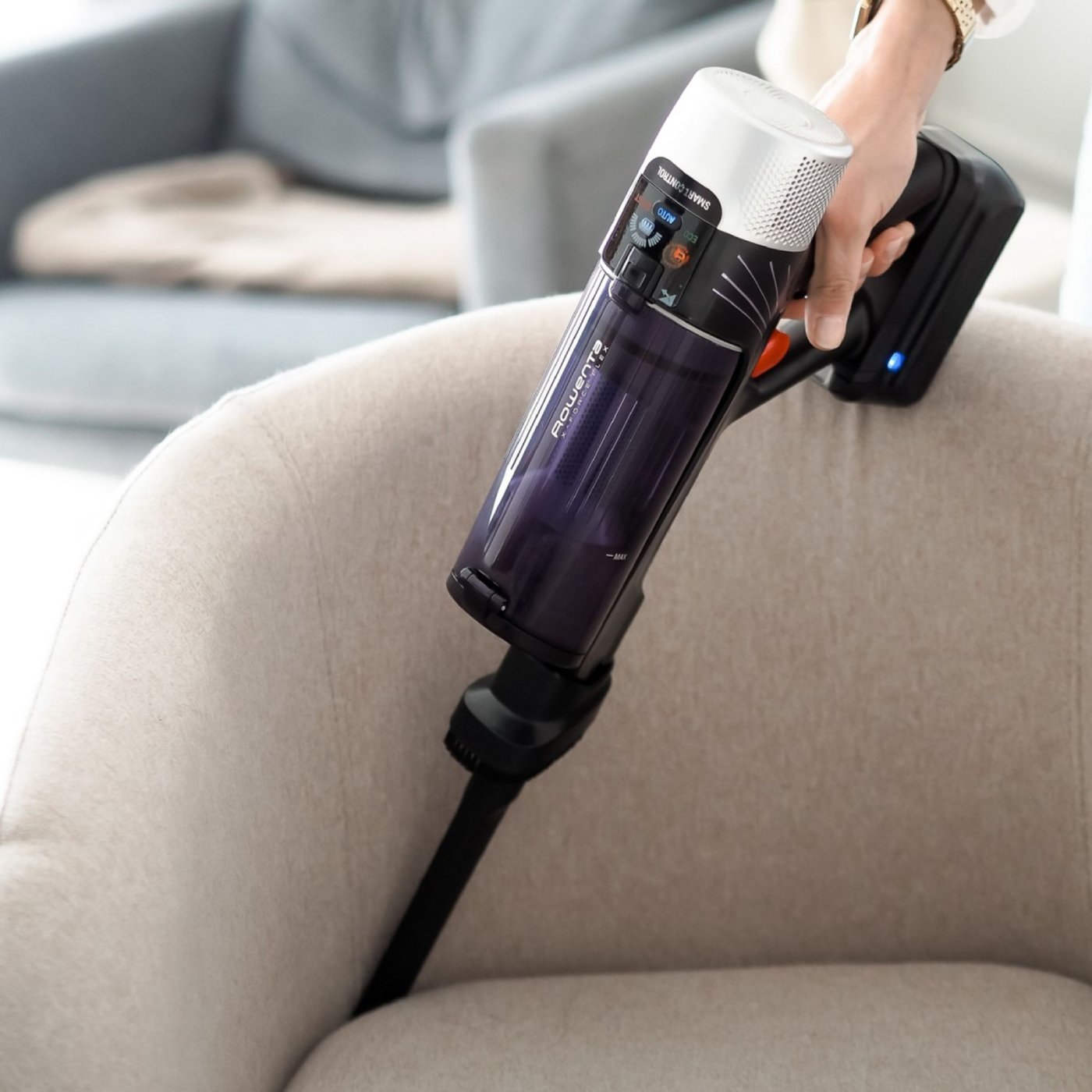 Ανακαλύψτε την ασύρματη όρθια ηλεκτρική σκούπα Rowenta X-Force Flex 9.60 Allergy RH2038WO — η ιδανική λύση για αποτελεσματικό και άνετο καθάρισμα σε όλο το σπίτι σας. Με σταθερή ισχύ αναρρόφησης έως 100 Air Watt, αυτή η ηλεκτρική σκούπα προσφέρει υψηλή απόδοση σε πολλαπλές επιφάνειες, από σκληρά δάπεδα έως χαλιά. Ο εξαιρετικά ελαφρύς και εργονομικός σχεδιασμός, σε συνδυασμό με την τεχνολογία Flex tube, σας επιτρέπει να καθαρίζετε εύκολα κάτω από έπιπλα χωρίς να σκύβετε. Το προηγμένο σύστημα φιλτραρίσματος συγκρατεί έως και 99,9% της λεπτής σκόνης, των αλλεργιογόνων και των ακάρεων, καθιστώντας την ιδανική για σπίτια με άτομα ευαίσθητα στις αλλεργίες. Η έξυπνη οθόνη Smart Control εμφανίζει τη διάρκεια ζωής της μπαταρίας και την ανάγκη συντήρησης του φίλτρου σε πραγματικό χρόνο, ενώ η μπαταρία προσφέρει έως και 45 λεπτά λειτουργίας για εκτεταμένες συνεδρίες καθαρισμού.
