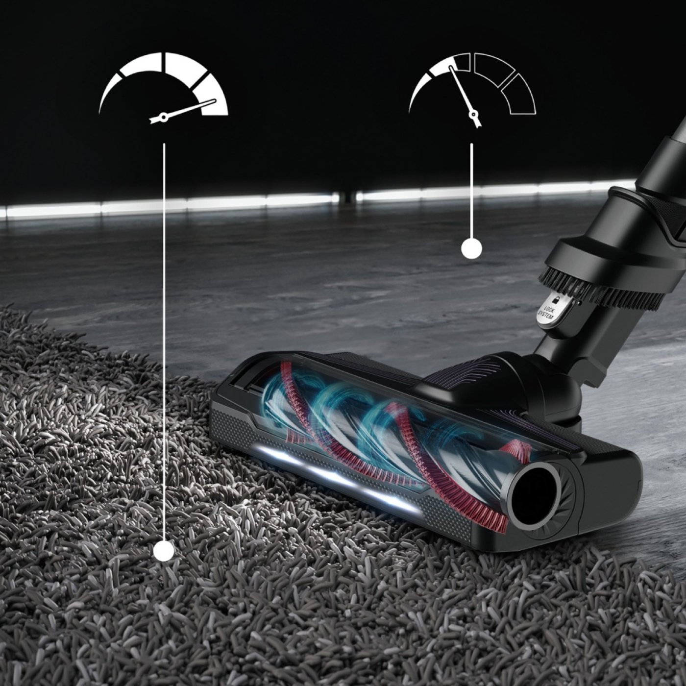 Αποδοτική ισχύς αναρρόφησης 100 AW για καλά αποτελέσματα σε διάφορες επιφάνειες.