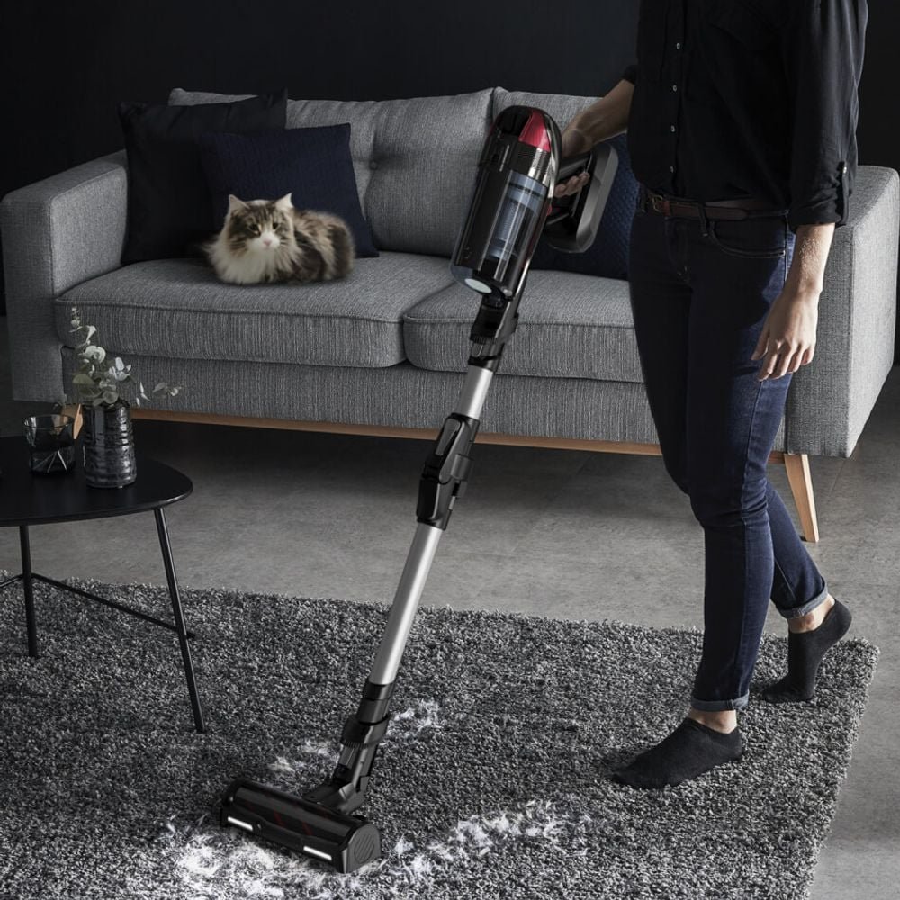 Ο καινοτόμος σχεδιασμός με την τεχνολογία Flex σάς επιτρέπει να σκουπίζετε με ηλεκτρική σκούπα έως και 4 φορές περισσότερο κάτω από χαμηλά έπιπλα χωρίς να σκύβετε, ενώ η κύρια βούρτσα με φωτισμό LED σας καθοδηγεί σε σκοτεινούς χώρους. Η οθόνη Smart Control εμφανίζει την υπολειπόμενη αυτονομία (σε λεπτά ή ποσοστό) και σας επιτρέπει να ρυθμίσετε τα 4 επίπεδα ισχύος. Το πακέτο Animal Care είναι ειδικά σχεδιασμένο για ιδιοκτήτες κατοικίδιων ζώων, συμπεριλαμβανομένης της βούρτσας Animal Turbo για αποτρίχωση και αξεσουάρ ταπετσαρίας. Με ένα γενναιόδωρο δοχείο σκόνης 0,9 λίτρων και φιλτράρισμα αλλεργιογόνων 99,9%, η Rowenta X-Force Flex 12.60 εξασφαλίζει αυξημένη υγιεινή και εύκολη ευελιξία σε κάθε γωνιά του σπιτιού σας.