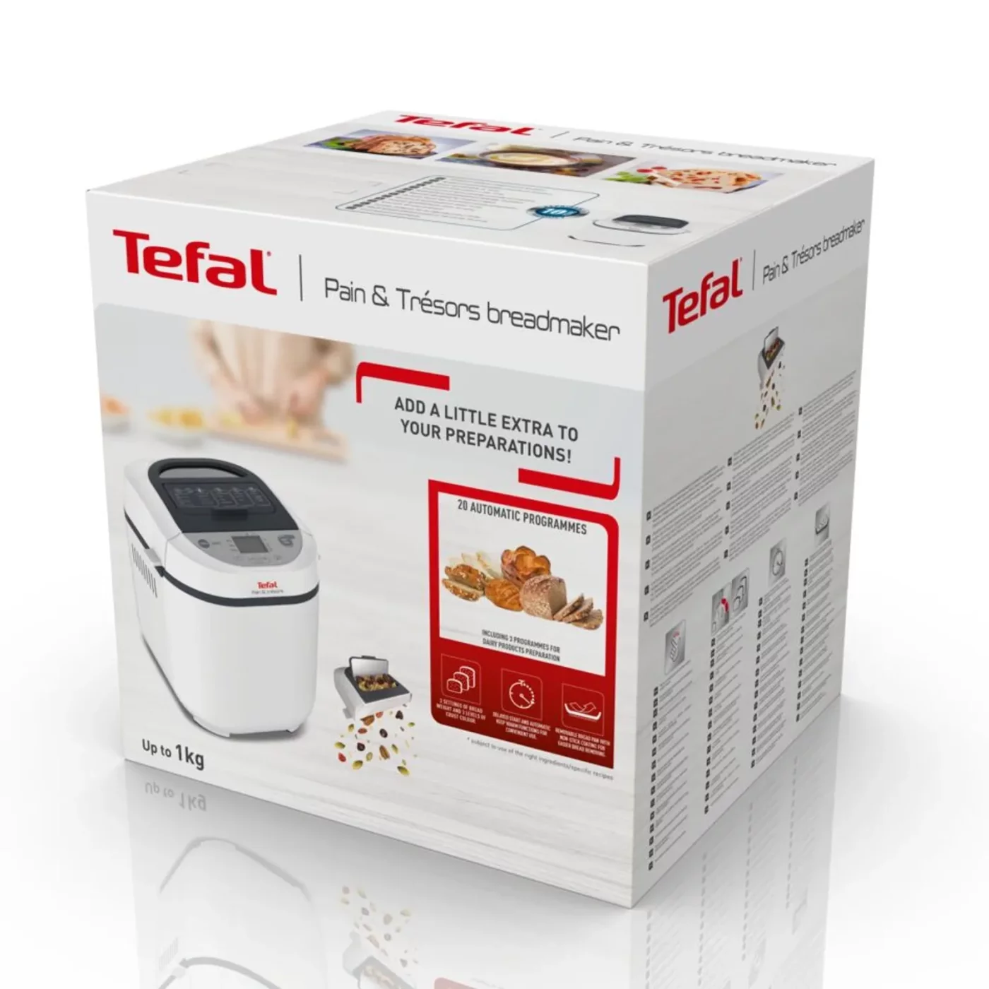 Ανακαλύψτε την ευελιξία στην κουζίνα με την αρτοπαρασκευαστή Tefal Pain et Tresors PF250135, την ιδανική συσκευή για όλη την οικογένεια. Με γενναιόδωρη χωρητικότητα έως 1000g και ισχύ 700W, αυτό το μοντέλο σας προσφέρει 20 αυτόματα προγράμματα, ιδανικά για φρέσκο ψωμί, ζύμη πίτσας, ζυμαρικά, νόστιμες μαρμελάδες, ακόμη και γαλακτοκομικά προϊόντα όπως γιαούρτι ή τυρί cottage. Απολαύστε υγιεινές επιλογές με τα 3 ειδικά προγράμματα χωρίς γλουτένη και προσαρμόστε τις συνταγές σας με τον ενσωματωμένο αυτόματο διανομέα, ο οποίος προσθέτει αυτόματα ξηρούς καρπούς, σπόρους ή νιφάδες σοκολάτας την κατάλληλη στιγμή. Χάρη στα 3 επίπεδα ψησίματος και την προγραμματιζόμενη λειτουργία έναρξης έως και 15 ωρών, θα ξυπνάτε κάθε πρωί με το αδιαμφισβήτητο άρωμα ζεστού, φρεσκοψημένου ψωμιού, ακριβώς σύμφωνα με το γούστο σας.