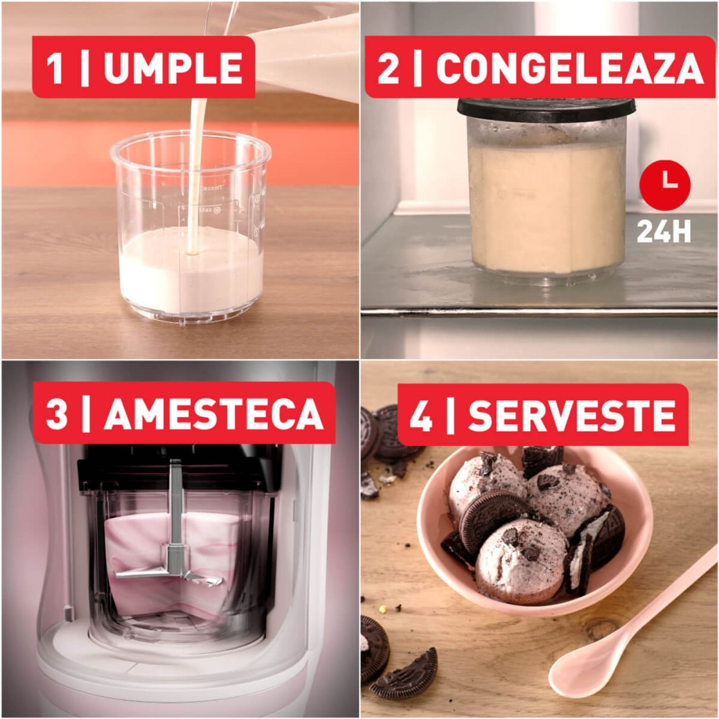 Εξοπλισμένη με 10 αυτόματα προγράμματα, η συσκευή ενσωματώνει 6 προγράμματα επιδορπίων και 4 προγράμματα ροφημάτων, καλύπτοντας ένα ευρύ φάσμα γλυκών ή δροσιστικών συνταγών. Η αποκλειστική τεχνολογία 1-Step Perfector εξασφαλίζει μια λεία και κρεμώδη υφή με μία μόνο χρήση, χωρίς ανακατέματα ή πρόσθετες προσαρμογές.