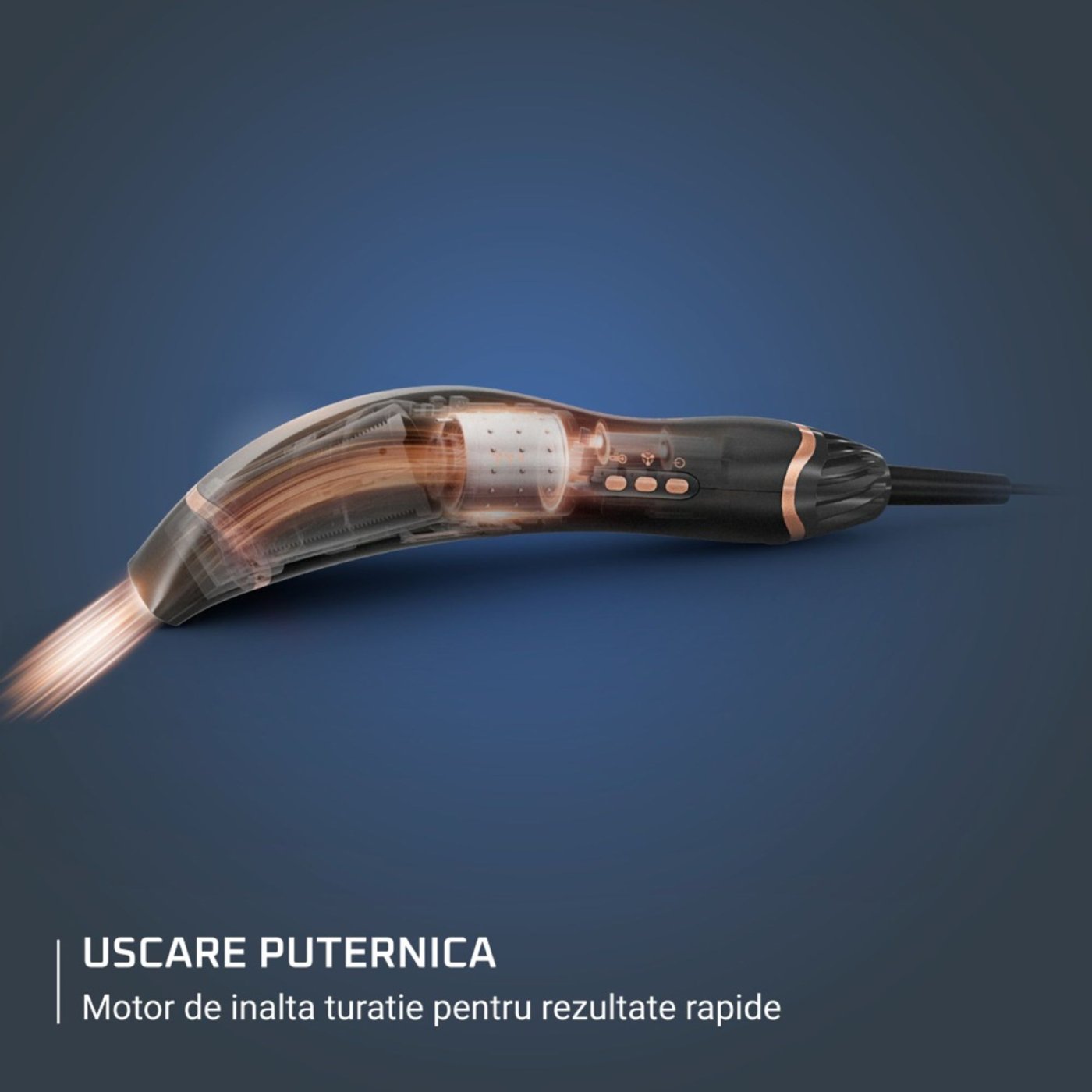 Γρήγορο και αποτελεσματικό στέγνωμα: Ο κινητήρας υψηλής ταχύτητας παράγει ροή αέρα έως και 170 χλμ./ώρα, για γρήγορα αποτελέσματα και μειωμένο φριζάρισμα.