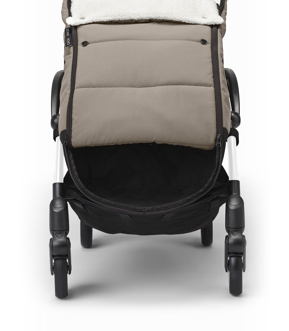 Πρακτικός Σχεδιασμός: Προσαρμόζεται εύκολα στο καρότσι Yoyo³, επιτρέποντας το κλείσιμο του καροτσιού μαζί με τον ποδόσακο. Διαθέτει άνοιγμα στο κάτω μέρος για να μην λερώνονται τα υφάσματα από τα παπούτσια και φερμουάρ για εύκολη πρόσβαση και ρύθμιση της θερμοκρασίας.