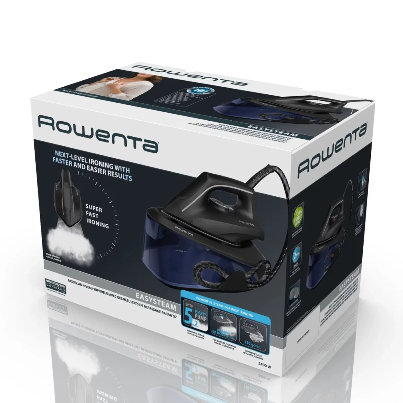 Ανακαλύψτε τον σταθμό σιδερώματος Rowenta Easy Steam VR5121F0, την ιδανική λύση για γρήγορο και αποτελεσματικό σιδέρωμα. Με ισχύ 2400W και πίεση αντλίας 5,2 bar, προσφέρει ισχυρό πίδακα ατμού 230 g/min και μεταβλητό ατμό 0-110 g/min, ιδανικό για άμεση λείανση των πιο δύσκολων τσακίσεων. Η γενναιόδωρη δεξαμενή νερού 1,4 L εξασφαλίζει εκτεταμένη αυτονομία, εξαλείφοντας την ανάγκη για συχνές αναπληρώσεις κατά τη χρήση. Η πλάκα σιδερώματος AirGlide Inox εγγυάται εξαιρετική ολίσθηση σε κάθε τύπο υφάσματος και αυξημένη αντοχή με την πάροδο του χρόνου. Ο συμπαγής σχεδιασμός συμπληρώνεται από βασικές λειτουργίες όπως η λειτουργία Eco για εξοικονόμηση ενέργειας, το σύστημα αυτόματης απενεργοποίησης για αυξημένη ασφάλεια και η επιλογή κάθετου ατμού, ιδανική για γρήγορο φρεσκάρισμα κουρτινών ή ρούχων απευθείας στην κρεμάστρα.