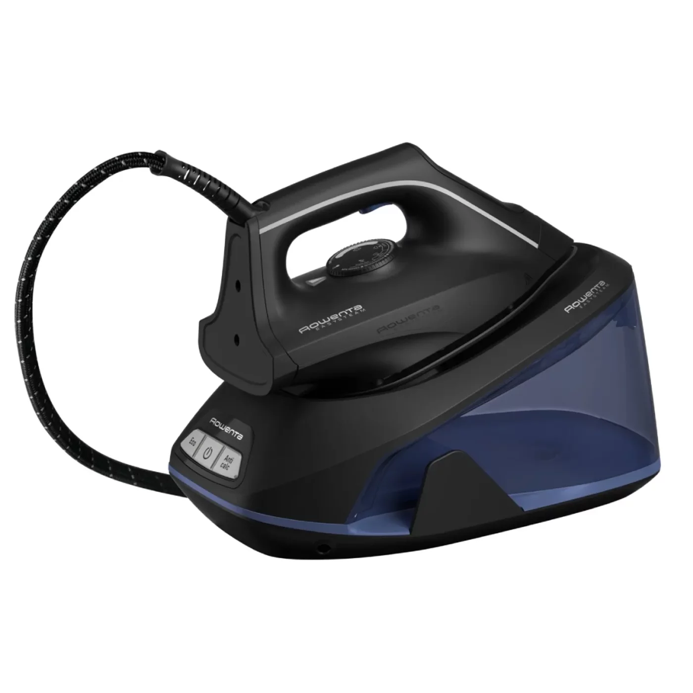 Σταθμός σιδερώματος Rowenta Easy Steam VR5121F0, 2400W, 5,2 bar, 230g/min, δεξαμενή 1,4L, πλάκα σιδερώματος AirGlide από ανοξείδωτο ατσάλι, μπλε/μαύρο