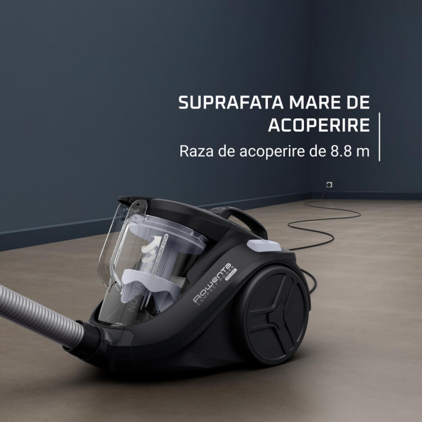 Ηλεκτρική σκούπα χωρίς σακούλα Rowenta Compact Power RO3731EA, δοχείο 1,5 L, ακτίνα λειτουργίας 8,8 m, 750 W