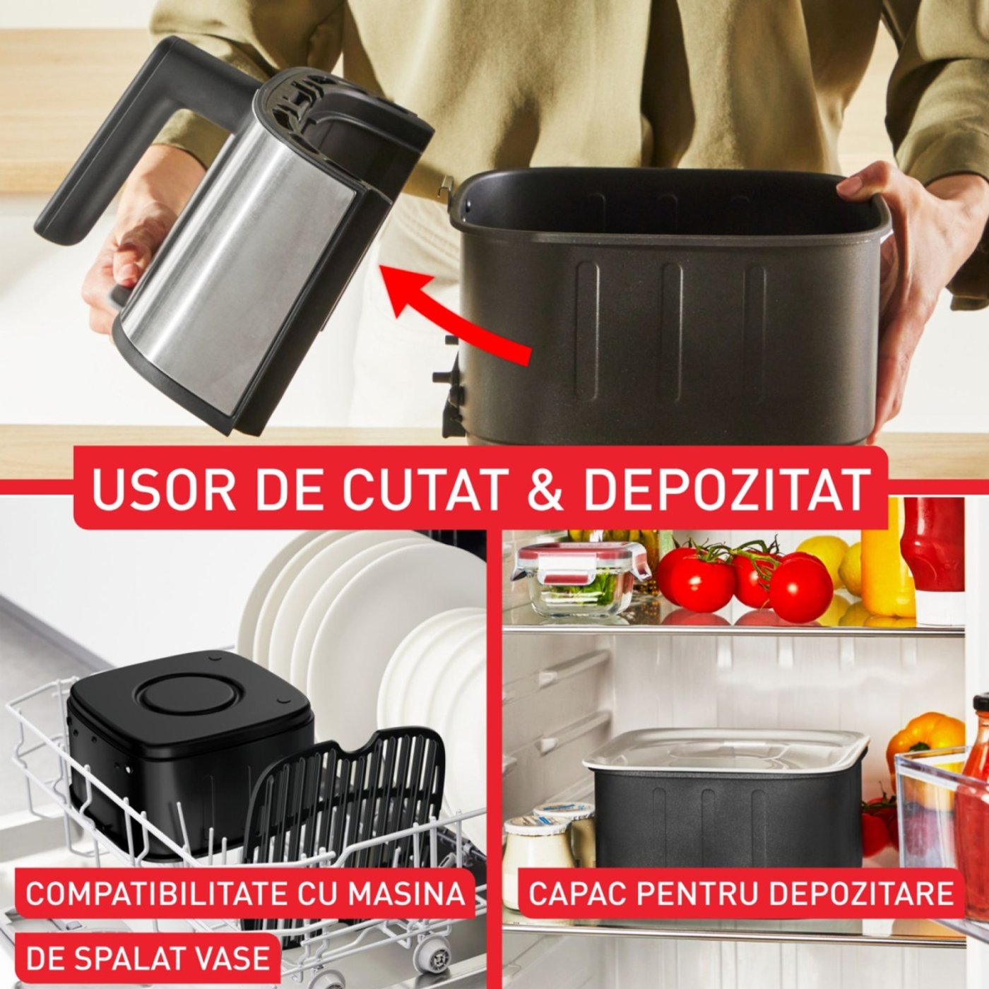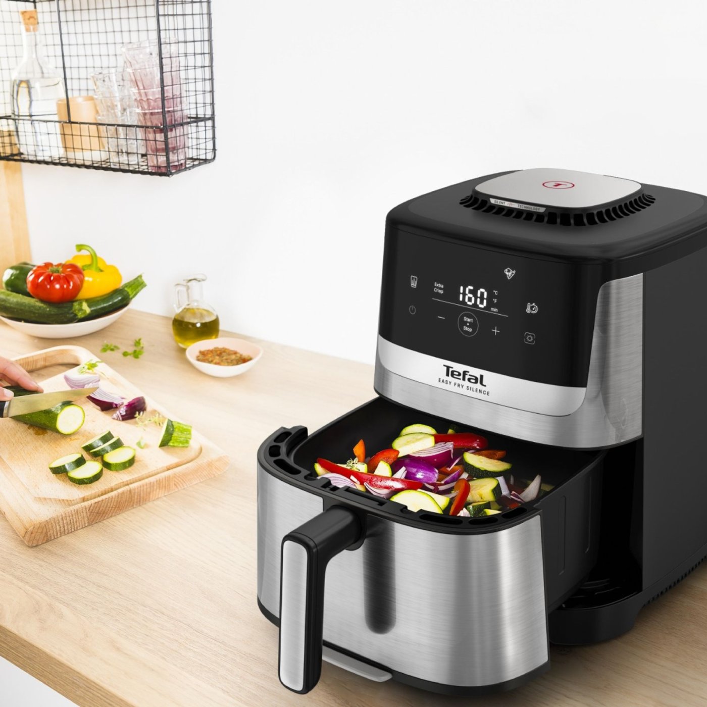 Η φριτέζα αέρα Easy Fry Silence έχει σχεδιαστεί για ενεργειακή απόδοση, μαγειρεύοντας έως και 55% πιο γρήγορα και καταναλώνοντας έως και 70% λιγότερη ενέργεια σε σύγκριση με έναν παραδοσιακό φούρνο. Επιπλέον, η εμπειρία μαγειρέματος μπορεί να εξατομικευτεί με την εφαρμογή My Tefal, η οποία προσφέρει εξατομικευμένες συνταγές και εξειδικευμένες υπηρεσίες.