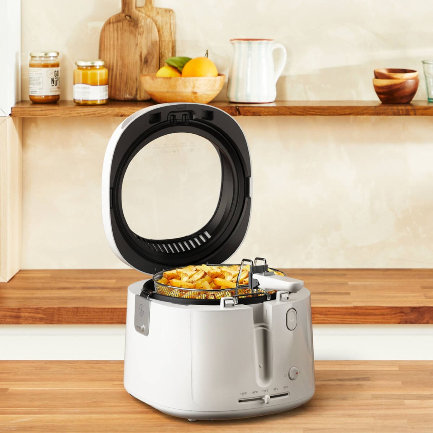 Ο καθαρισμός είναι γρήγορος και εύκολος χάρη στα αφαιρούμενα εξαρτήματα, όπως το καλάθι τηγανίσματος, το καπάκι και το ανεξάρτητο πλέγμα φίλτρου. Ο εύχρηστος πίνακας ελέγχου προσφέρει ρυθμιζόμενη θερμοκρασία, χρονοδιακόπτη, κουμπί ενεργοποίησης/απενεργοποίησης και αυτόματο άνοιγμα καπακιού, για μια ασφαλή και άνετη εμπειρία μαγειρέματος.