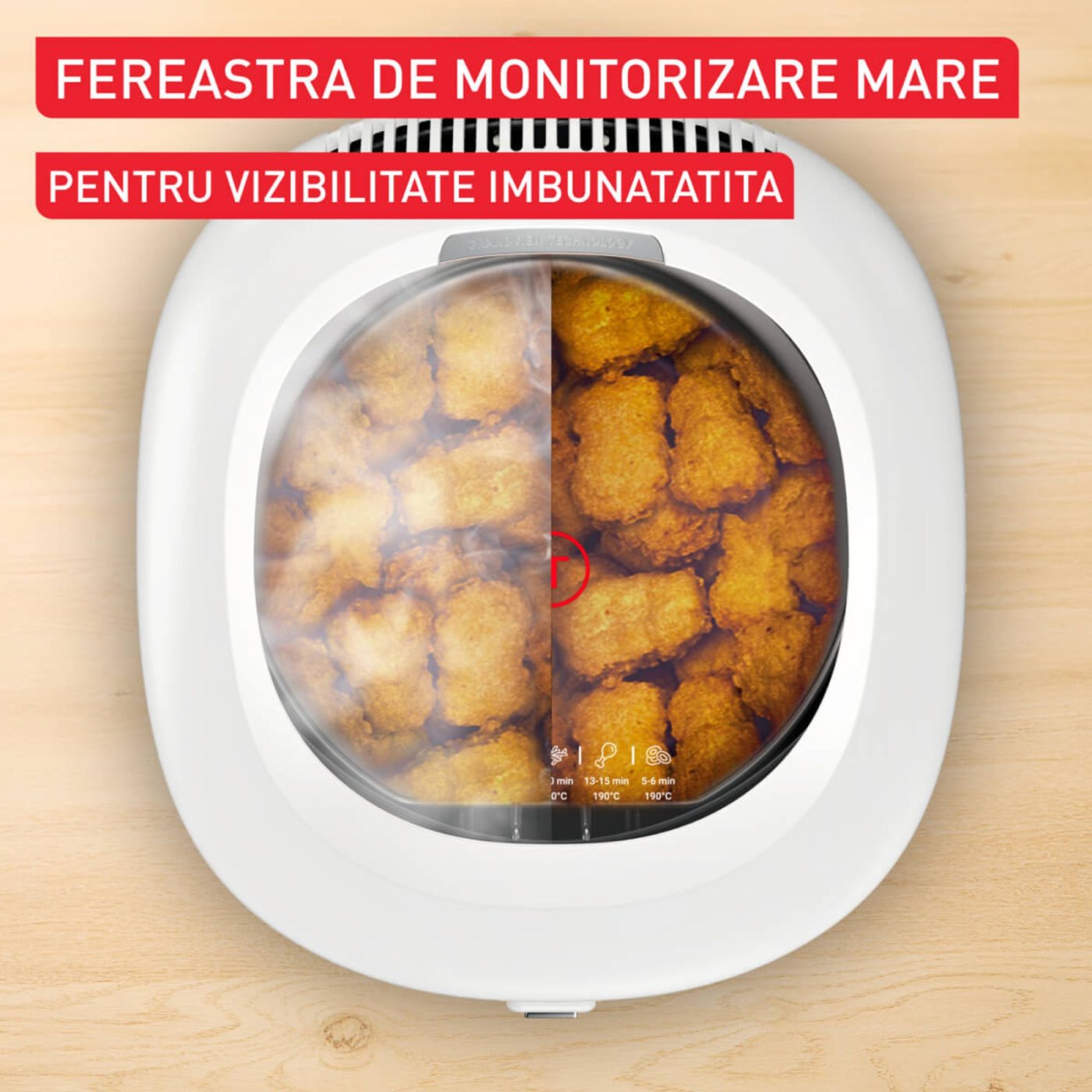 Ένα σημαντικό πλεονέκτημα είναι το XL αντιθαμβωτικό παράθυρο, έως και 3 φορές μεγαλύτερο και πιο καθαρό, το οποίο επιτρέπει τη συνεχή παρακολούθηση των παρασκευασμάτων χωρίς να ανοίγει το καπάκι. Το σύστημα φιλτραρίσματος μεταλλικού πλέγματος απομακρύνει αποτελεσματικά τις ακαθαρσίες μετά από κάθε χρήση, διατηρώντας το λάδι καθαρότερο για μεγαλύτερο χρονικό διάστημα και εξασφαλίζοντας πιο νόστιμες παρασκευές.