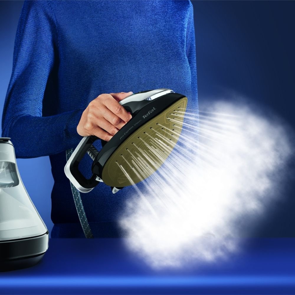 Σταθμός σιδερώματος Tefal Pro Express Vision GV9821E0, 3000W, Smart LED Vision, Πλάκα Durilium Airglide Autoclean, Μαύρο/Ασημί
