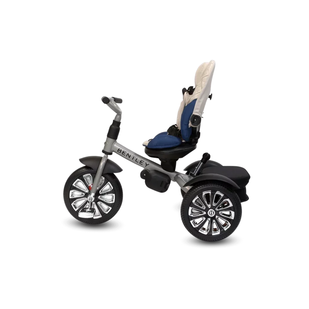 Είμαστε στην ευχάριστη θέση να σας παρουσιάσουμε το Bentley Mulliner, ένα παιδικό τρίκυκλο πολυτελείας με το χαρακτηριστικό στυλ της Bentley Mulliner. Οι τροχοί του αποτελούν πιστό αντίγραφο των αυθεντικών ζαντών του Bentley Continental GT Mulliner.