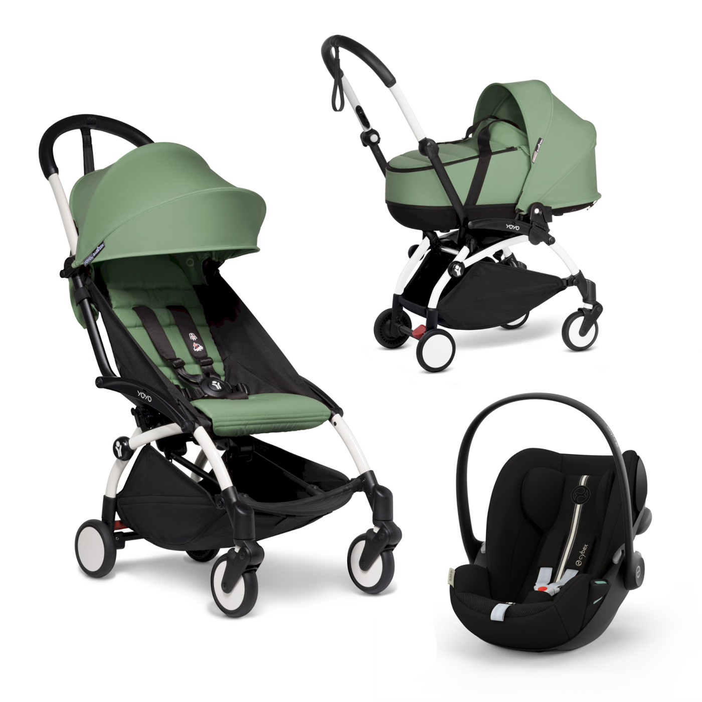 Καρότσι μωρού BABYZEN YOYO² 3 σε 1, λευκό σκελετό, με πορτ-μπεμπέ, κάθισμα αυτοκινήτου Cloud G και χρωματικό πακέτο Peppermint