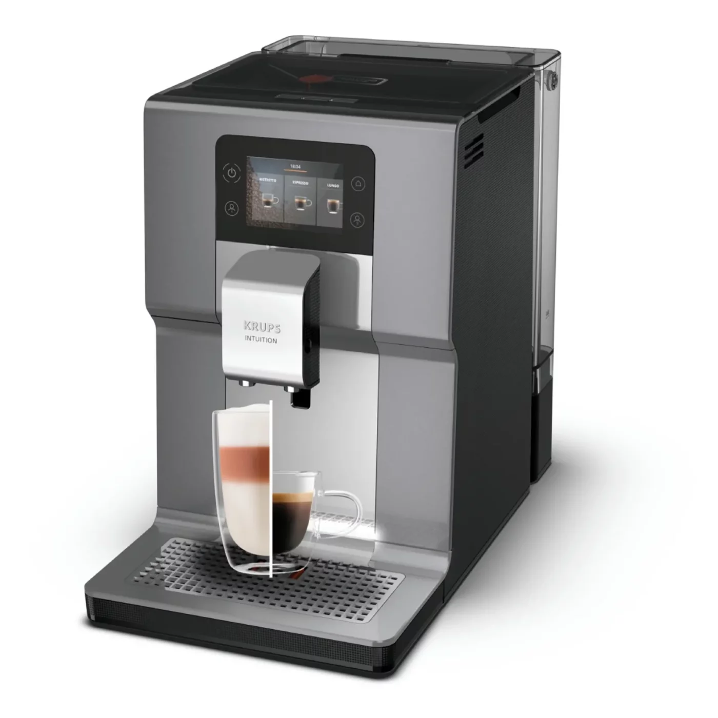 Αυτόματη μηχανή εσπρέσο Krups Intuition Preference+ EA875E10, 15 φλιτζάνια, 15 συνταγές & αφροποιητής γάλακτος, 1450 W Διαισθητική και εύχρηστη ψηφιακή οθόνη. Φωτεινές ενδείξεις που θα σας καθοδηγούν καθημερινά προς την εύκολη συντήρηση ...