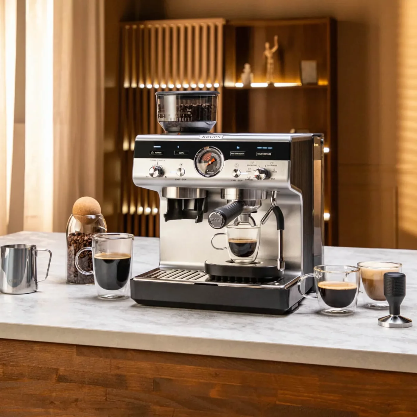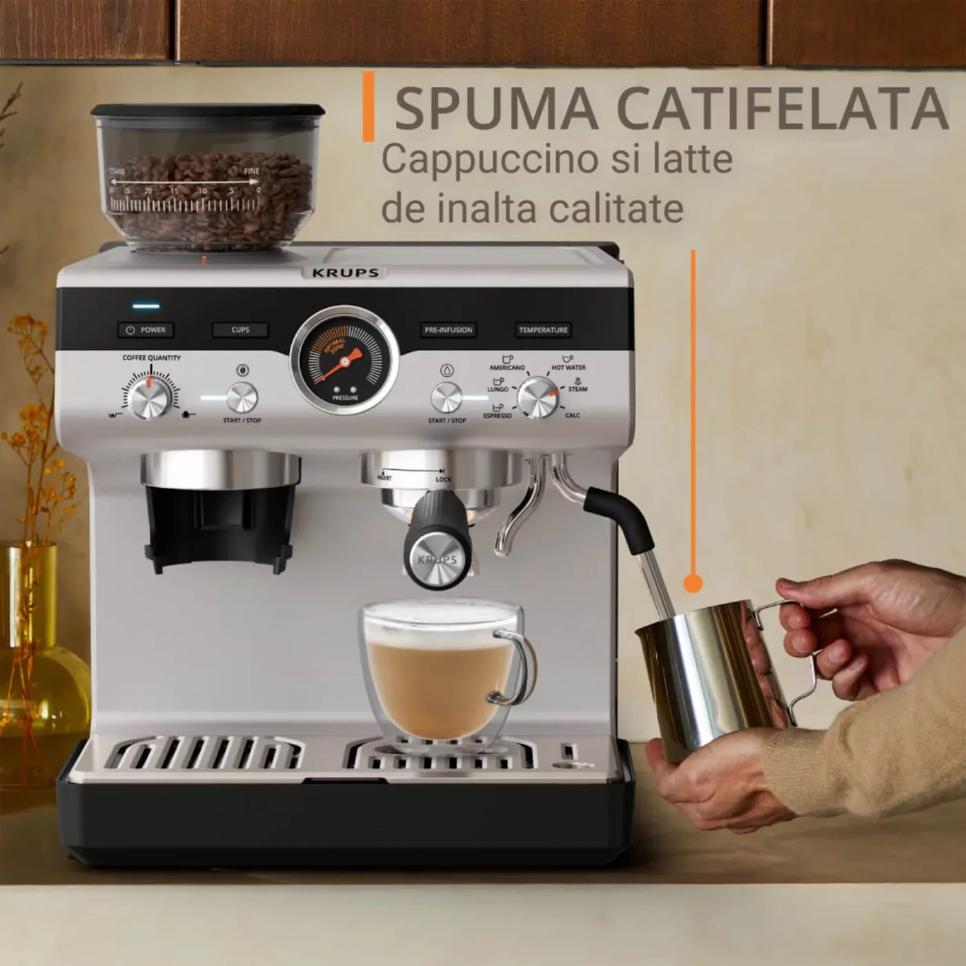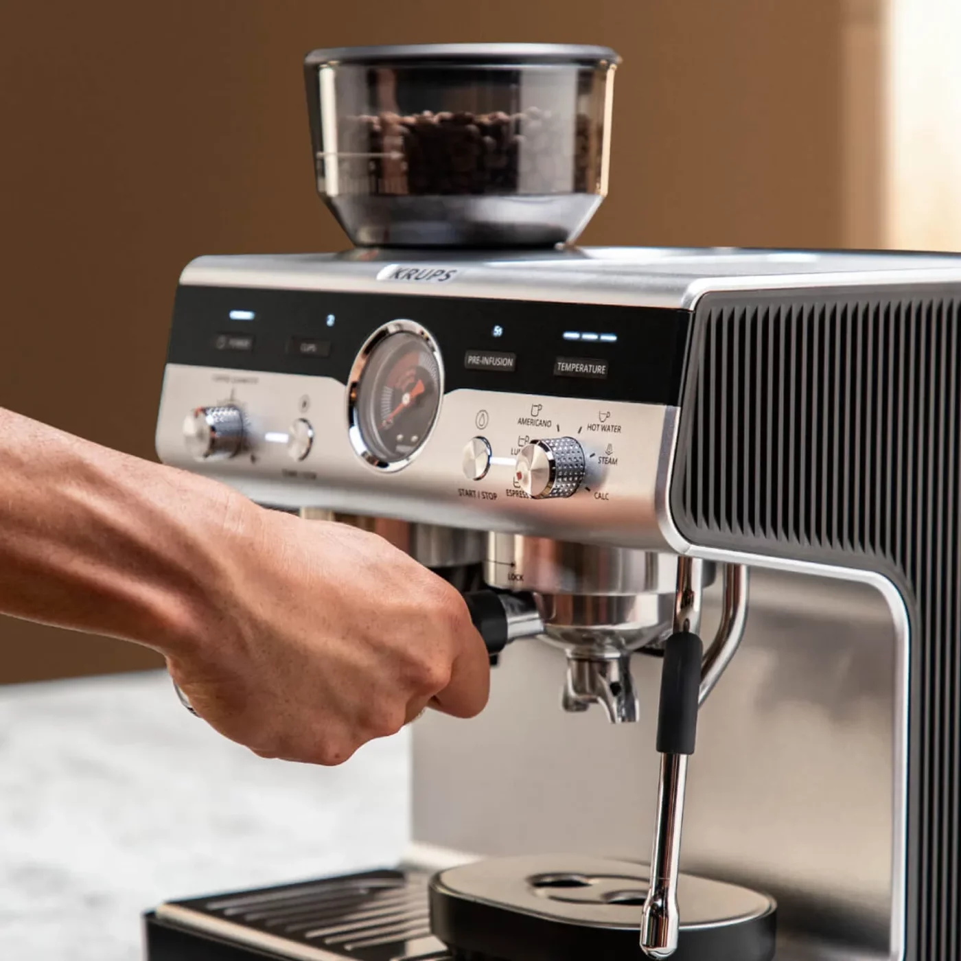 Μετατρέψτε κάθε φλιτζάνι καφέ σε μια αυθεντική εμπειρία με την Krups Precision. Σχεδιασμένη για τους λάτρεις του εσπρέσο και των ροφημάτων με βάση το γάλα, αυτή η χειροκίνητη μηχανή εσπρέσο με ενσωματωμένο μύλο σάς δίνει τον απόλυτο έλεγχο κάθε λεπτομέρειας: από την άλεση και την προέγχυση έως την εκχύλιση και το αφρισμό.