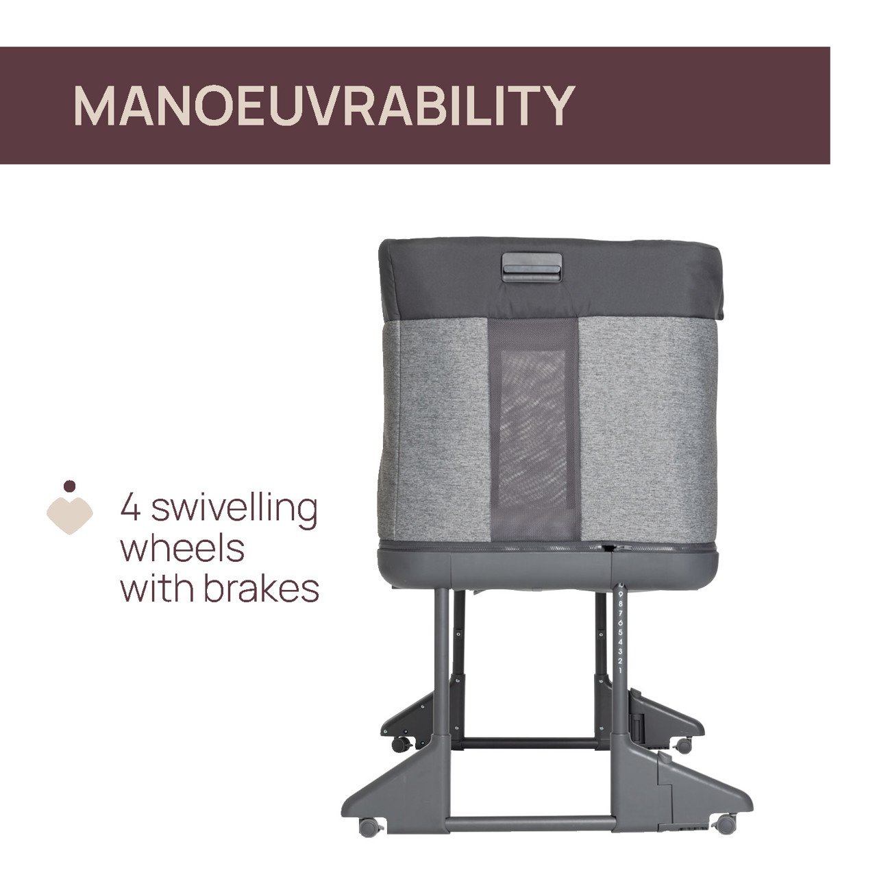 Η κούνια μωρού είναι εξοπλισμένη με 4 ρόδες με φρένα για ελεύθερη κίνηση.