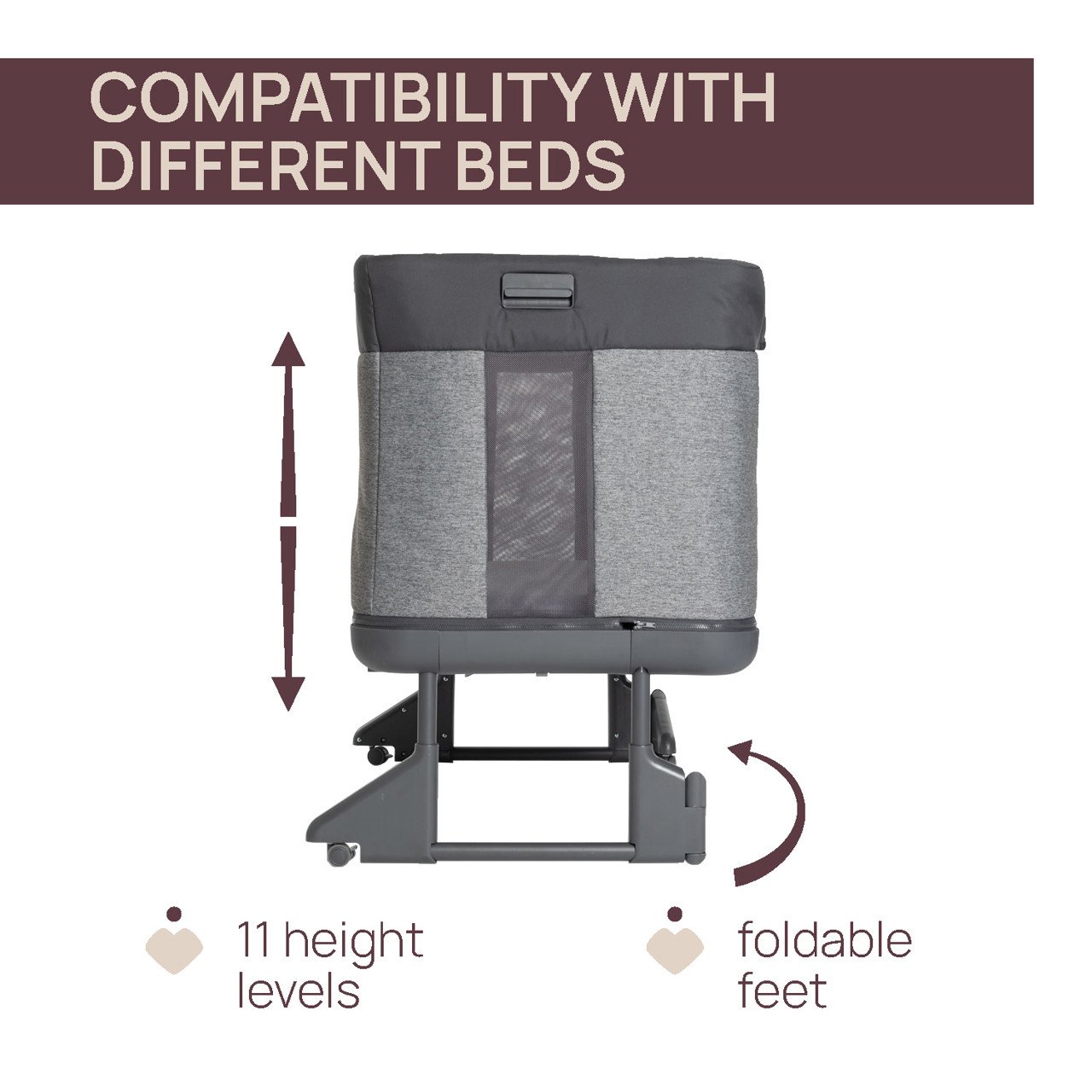 Η βρεφική κούνια μπορεί να ρυθμιστεί σε 11 επίπεδα ύψους για να ταιριάζει σε μια μεγάλη ποικιλία κρεβατιών ενηλίκων.