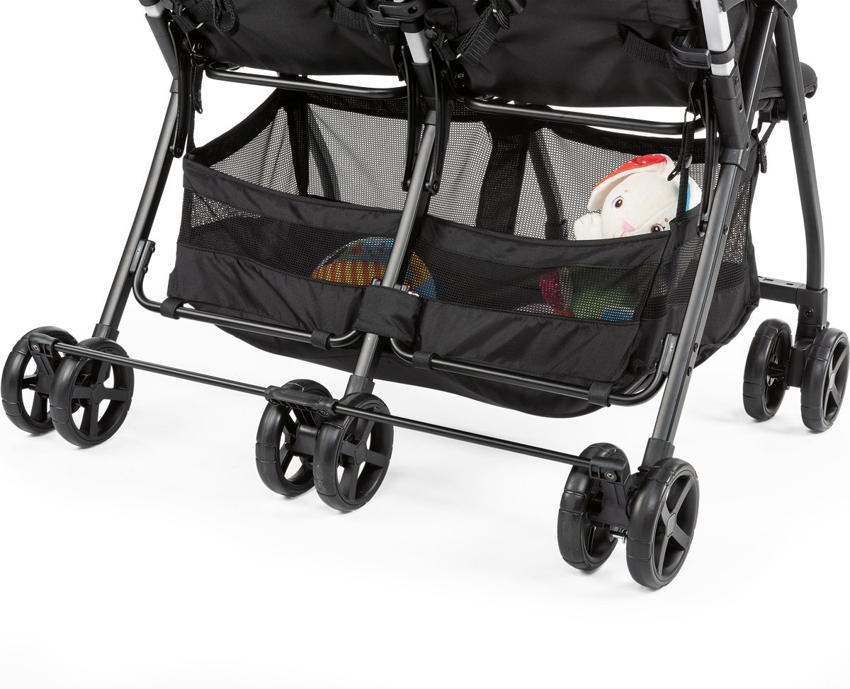 Εξαιρετικά συμπαγές και εύκολο στο δίπλωμα: το καρότσι κλείνει με το ένα χέρι και γίνεται εξαιρετικά συμπαγές μετά το δίπλωμα χάρη στον μηχανισμό δίπλωσης. Μόλις διπλωθεί, το καρότσι για δίδυμα παραμένει σε όρθια θέση χωρίς στήριξη.