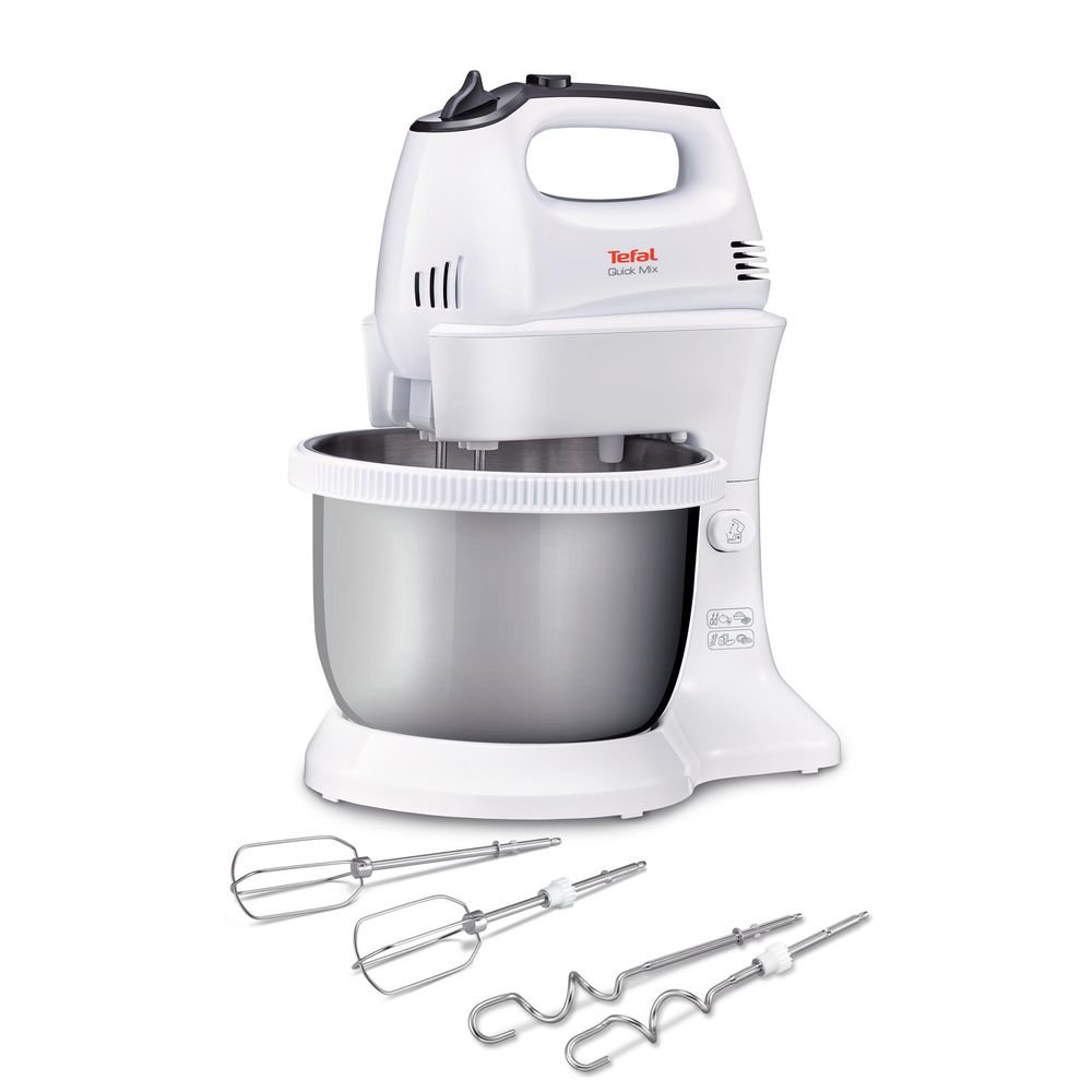 Διαθέτει 5 ρυθμίσεις ταχύτητας και λειτουργία Turbo , καθιστώντας το ιδανικό για κάθε είδους σύνθεση, από αφρώδη ασπράδια αυγών μέχρι χοντρές ζύμες ψωμιού ή πίτσας. Το μπολ και τα αξεσουάρ που περιλαμβάνονται (χτυπητήρια και γάντζοι) είναι κατασκευασμένα από ανθεκτικά υλικά και πλένονται στο πλυντήριο πιάτων, εξασφαλίζοντας γρήγορο και εύκολο καθάρισμα. Με συμπαγή και εργονομικό σχεδιασμό, το Tefal Quick Mix είναι η ιδανική λύση για επαγγελματικά αποτελέσματα στο σπίτι.