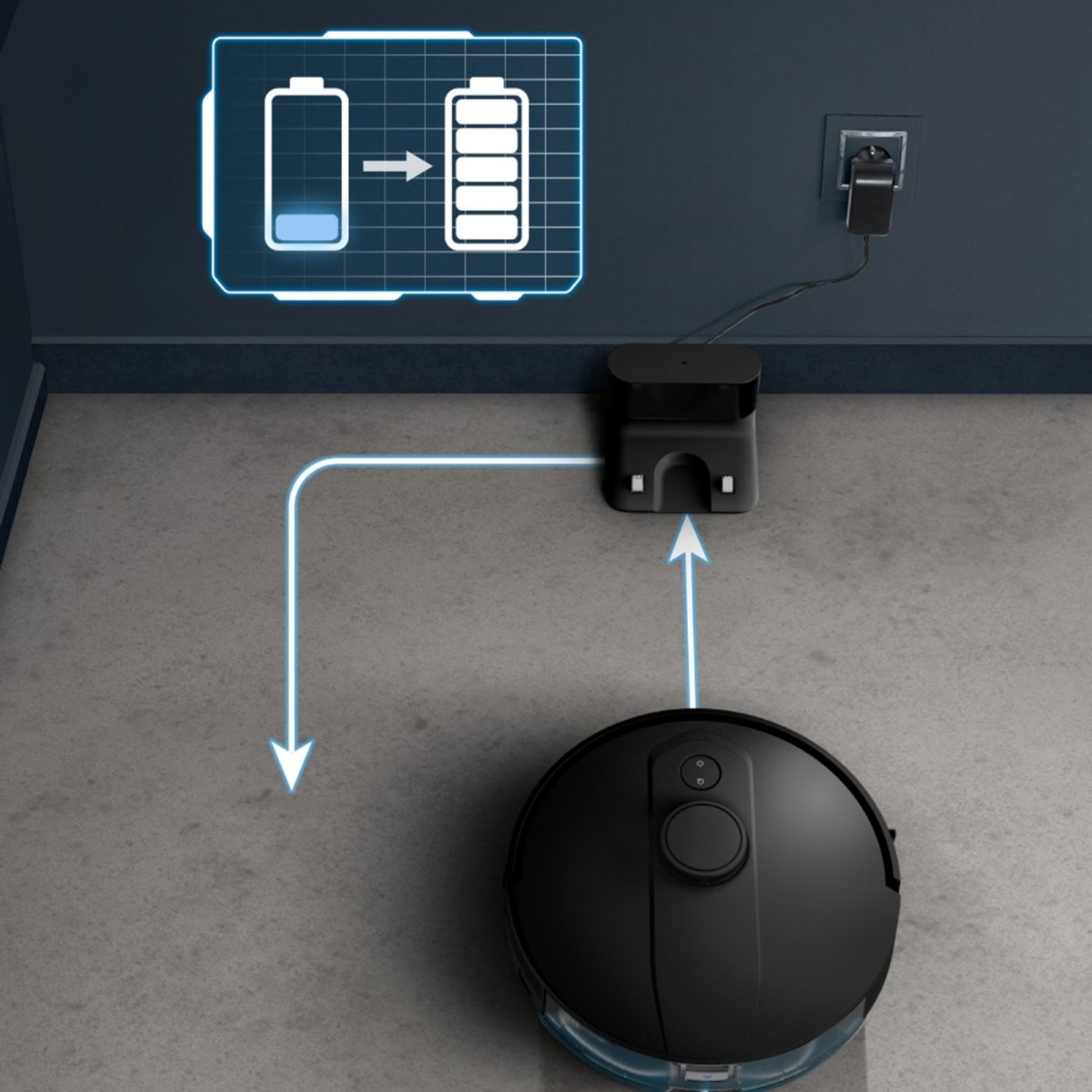 Μέσω της εφαρμογής Rowenta για κινητά, μπορείτε να ορίσετε εξατομικευμένες ρουτίνες, να ορίσετε περιοχές όπου δεν επιτρέπεται η χρήση και να προγραμματίσετε τον καθαρισμό ακριβώς όποτε θέλετε. Στη λειτουργία Eco, η αυτονομία έως και 120 λεπτών επιτρέπει τον πλήρη καθαρισμό των επιφανειών και η ηλεκτρική σκούπα επιστρέφει αυτόματα στον σταθμό φόρτισης και συνεχίζει τον κύκλο της χωρίς την παρέμβασή σας.